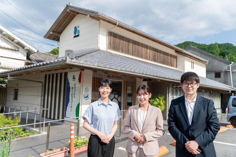営業課の前田さんは入行6年目。佐川支店で地域のお店や農家を営むお客さまへの預金や融資、各種金融商品などの提案や相談対応が主な業務である。「近年では、朝ドラ『らんまん』による観光客の増加で、街全体が一体となって地域を盛り上げていこうという賑やかな雰囲気がありました。私もその1人として、街中の皆さんが着ているお揃いのTシャツを着て訪問することもあったり」と楽しそうに話してくれた。 女性行員は窓口のイメージが強い方も多いかもしれないが、前田さんのように颯爽と街中に繰り出す行員も増えている。「用事があってお客さまが来られる窓口とは違い、こちらから訪ねると最初は少し距離を取られることもあったのですが、仕事とは関係ない話や、あえて何度も足を運ぶことで、今はお客さまからお客さまをご紹介していただくこともある」と前田さん。「前田さんがおる街」と佐川町で愛され、頼りにされる行員になりたいと笑顔で意気込む。