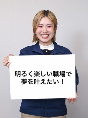 ものづくりの仕事に興味があり、高校卒業と同時にこの業界に入りました。人見知りの性格なので、初の社会人生活には不安もありましたが、優しい先輩や明るい同期たちに恵まれ、ストレスなく仕事を覚えることに夢中になれています!