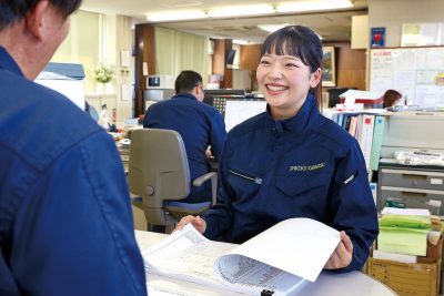 社員一人ひとりの専門性を伸ばしながら、若手の内から現場のマネジメント力や、仕事に対する責任感をしっかり育んでいくのも会社の使命。また、令和6年には、同社では初の「建設ディレクター」として専門の女性スタッフが雇用され、職域を広げた女性が活躍できる職場づくりや、業界のICT化にも精力的に取り組んでいる。